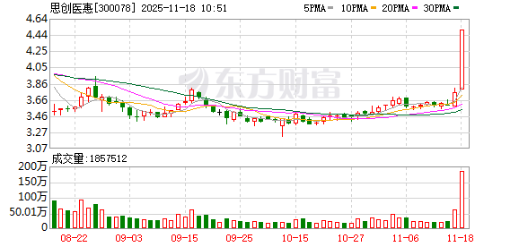 北京商报讯(记者丁宁)11月18日,思创医惠(维权)(300078)高开高走宏粤配资,盘中冲上涨停。截至北京商报记者发稿,思创医惠报4.5元/股,涨幅为20%。